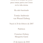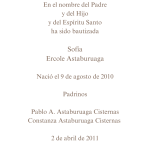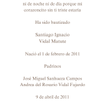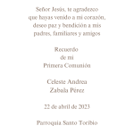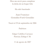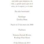Los datos ingresados serán tratados tal cual estén escritos y son de expresa responsabilidad del cliente. Antes de enviar el formulario, verifique los datos del niño/niña, las fechas pertinentes al sacramento, apellidos, nombres y versículo escogido. Una vez enviado el formulario, no se aceptarán rectificaciones ni correcciones de la información dada.